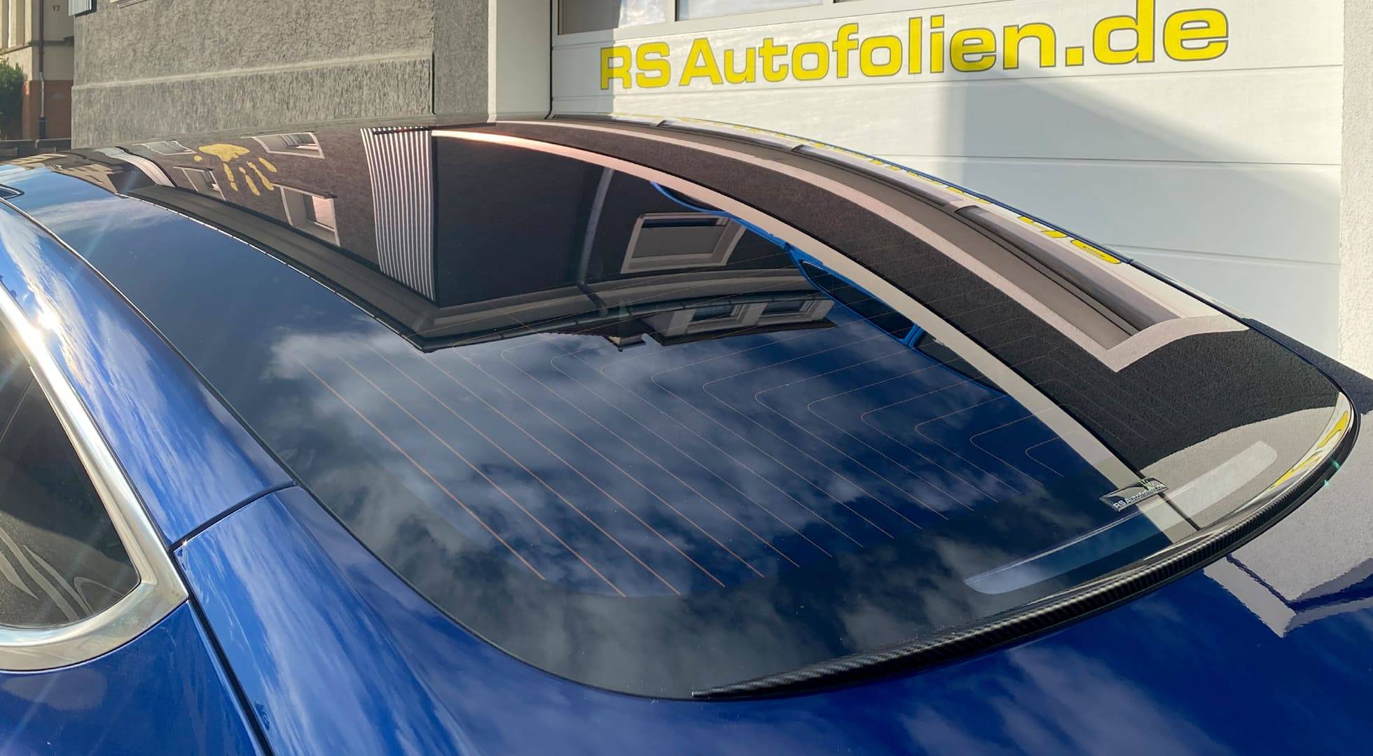 Wir verwenden ausschließlich hochwertige Markenfolien mit verschiedenen Tönungsgraden bis hin zu 97% Tönung. Sehr dunkel bei noch relativ guter Sicht von innen nach außen.